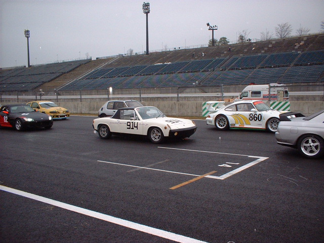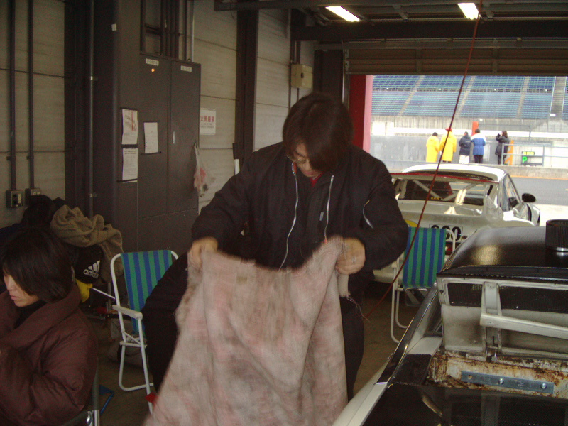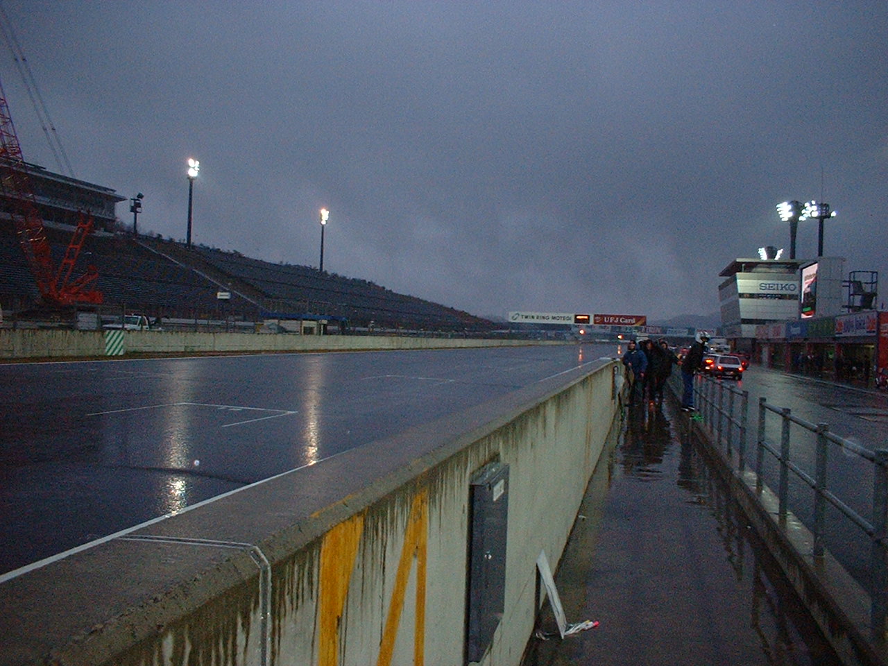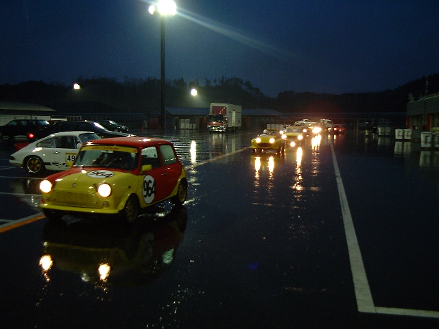 レース終了。次々と帰ってくるエントラントカー。もう土砂降り&真っ暗。