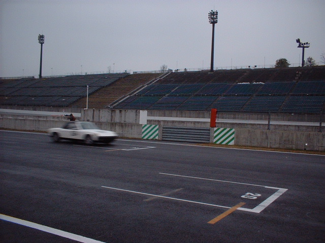 こんなレインコンディション。レース中断でペースカー導入。